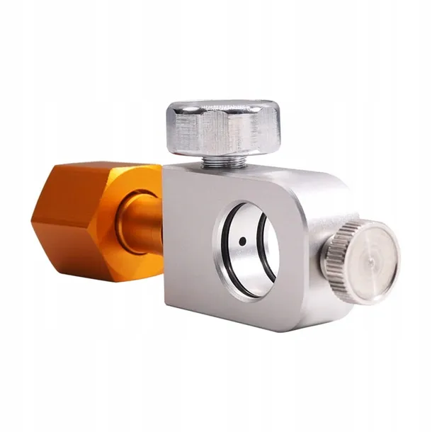 Przetoczka wyposażona w aluminiową nakrętkę która ma więcej zwoi niż mosiężna, minimalna wymagana długość gwintu na butli to 14mm.